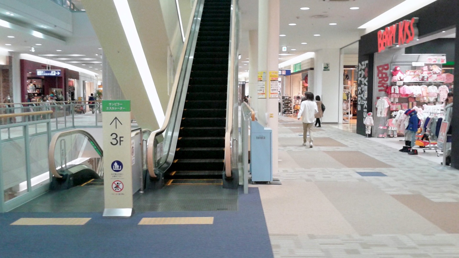 ここで気づいたんですが、ここのモールは階段に色がついてまして