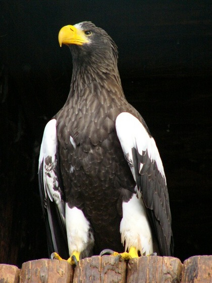 動物園に来てさいしょにオオワシを見ました。仕事を探し終わったときまた見たら、木の上で羽をひらいていました。何をしていたのかぜんぜんわかりませんでした。