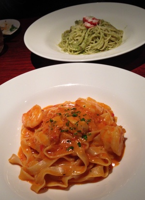 パスタが2種きた!海老クリームとジェノベーゼ。