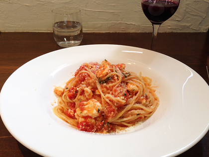 パスタはフレッシュトマトとリコッタチーズ、バジリコのスパゲッティーニ。