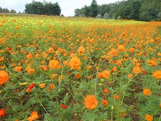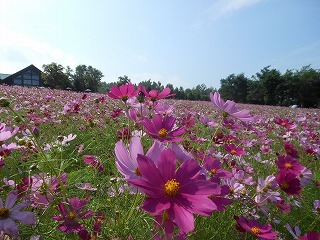 9月8日から開催の「コスモスフェスタ」。日曜日から3日間150mmを超える大雨が降り、開花状況が心配されましたが、天気が持ち直した後は、またすくすくと生育し、15日現在、風の丘のコスモス(センセーションMIX、中輪美色MIX)と