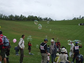 定山渓温泉の出張足湯や大きくてなかなか割れないシャボン玉づくりが体験できます。