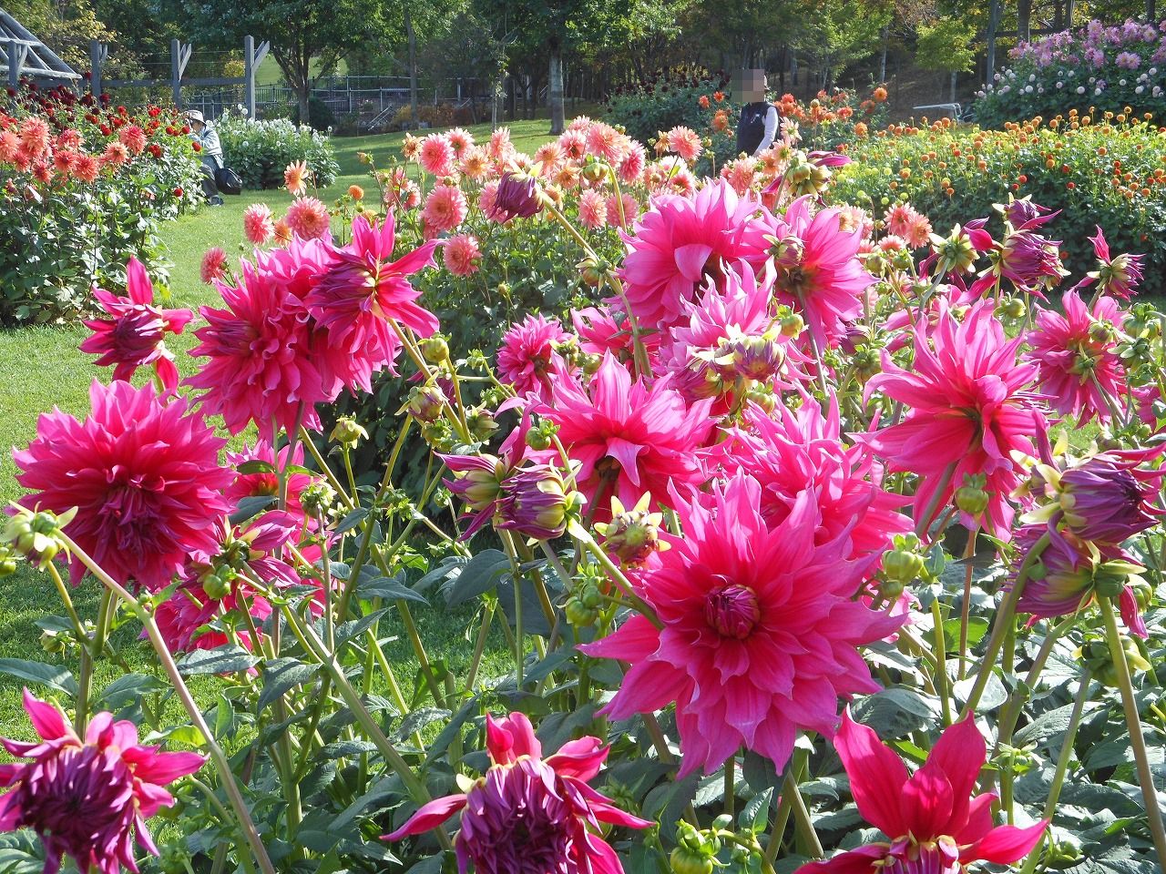 国営滝野すずらん丘陵公園 中心ゾーン 東口ゲートからカントリーガーデンまで、160品種 600株のダリアSelectionが開催中なのですが、今が1番の見頃となってきました。