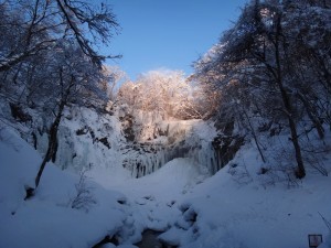 厳冬期になると滝が柱のように凍る氷瀑という現象が見られます。