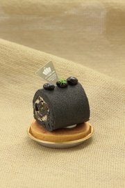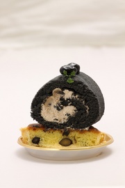 黒豆ムースの上にチョコレートクリームが絞ってあります。