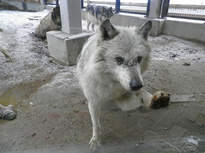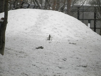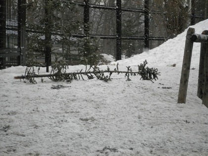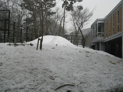 オオカミ舎でもゆっくりと雪解けが進んでいます。