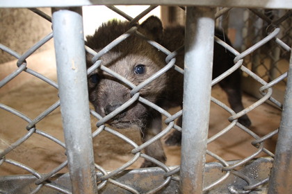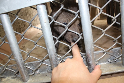 巣穴から出され性別判定、本来なら人間(飼育係)を