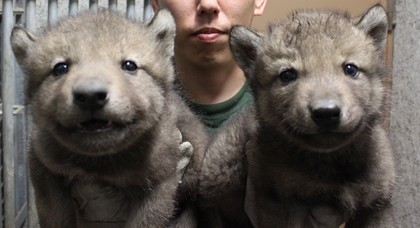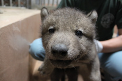 2011年5月9日(月曜日)に生まれた、シンリンオオカミの2頭の赤ちゃんの身体測定を