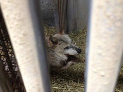 会場で「オオカミの毛触らせてください」と