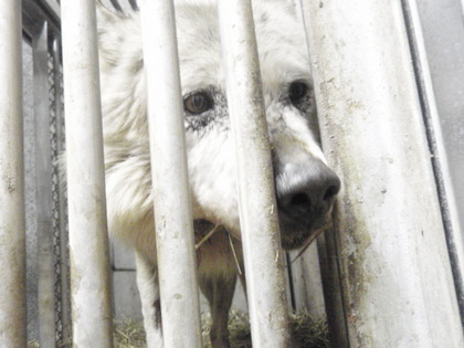 会場で「オオカミの毛触らせてください」と