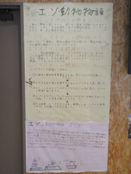 でエゾシカ・オオカミ舎の壁にこのようなものを見つけました。