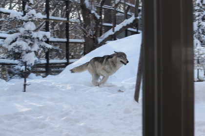 ①オオカミへの給餌(ガイドなし) 9:00~9:30の間