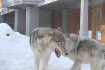 シンリンオオカミの「ジェイ」と「キナコ」はこれから発情・交尾と大事な時期を迎えます。