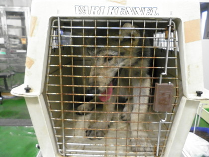 移動用ケースに入れられ動物病院へ(ショウ初めての外出です)