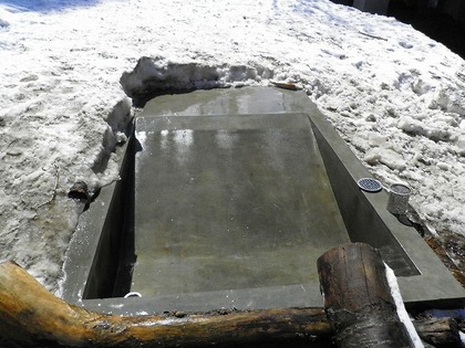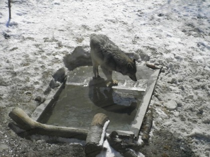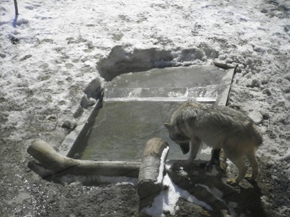 雪解けも進み『オオカミ舎名物ちっちゃいプール』も雪の下から見えるようになってきました。