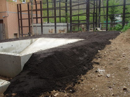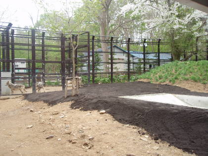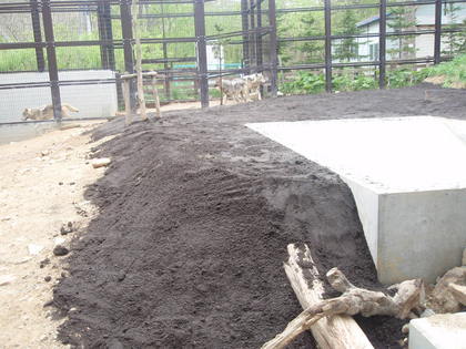 昨年に引き続きオオカミ舎には黒土を入れてもらいました。